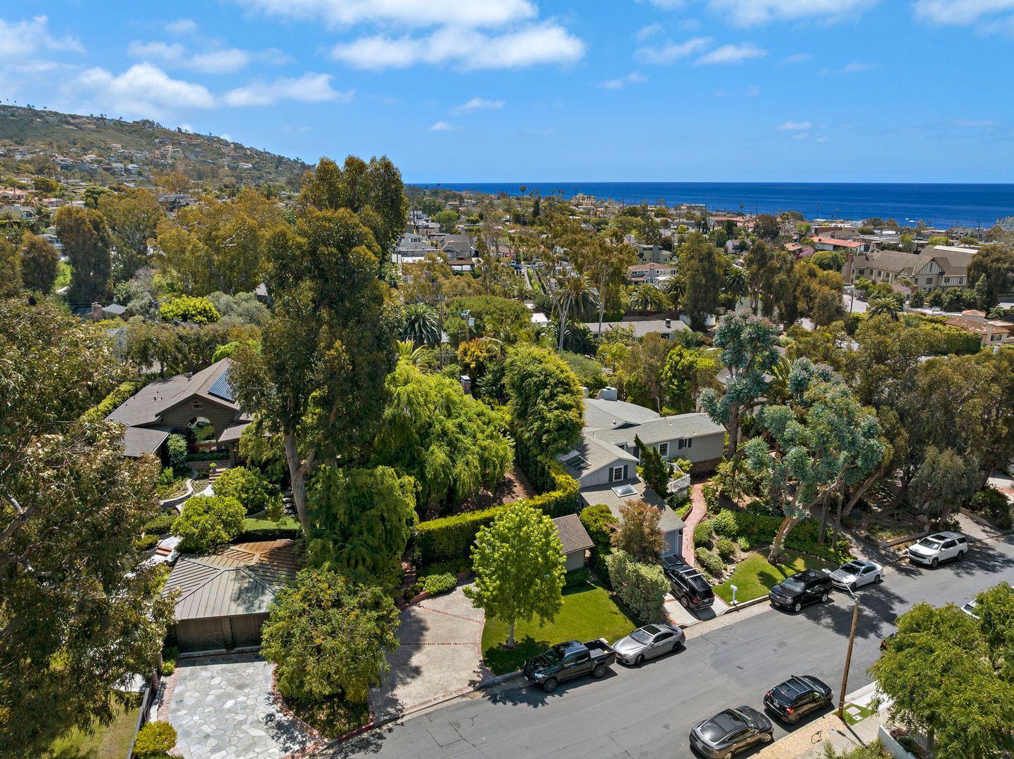 Set on over 7,000 square feet of prime Laguna Beach property, this private oasis welcomes you through a canopy of mature trees into a serene retreat. Natural light floods the home through wood casement windows, highlighting exposed high-beamed ceilings and warm wood floors that echo the elegance of early Laguna Beach.